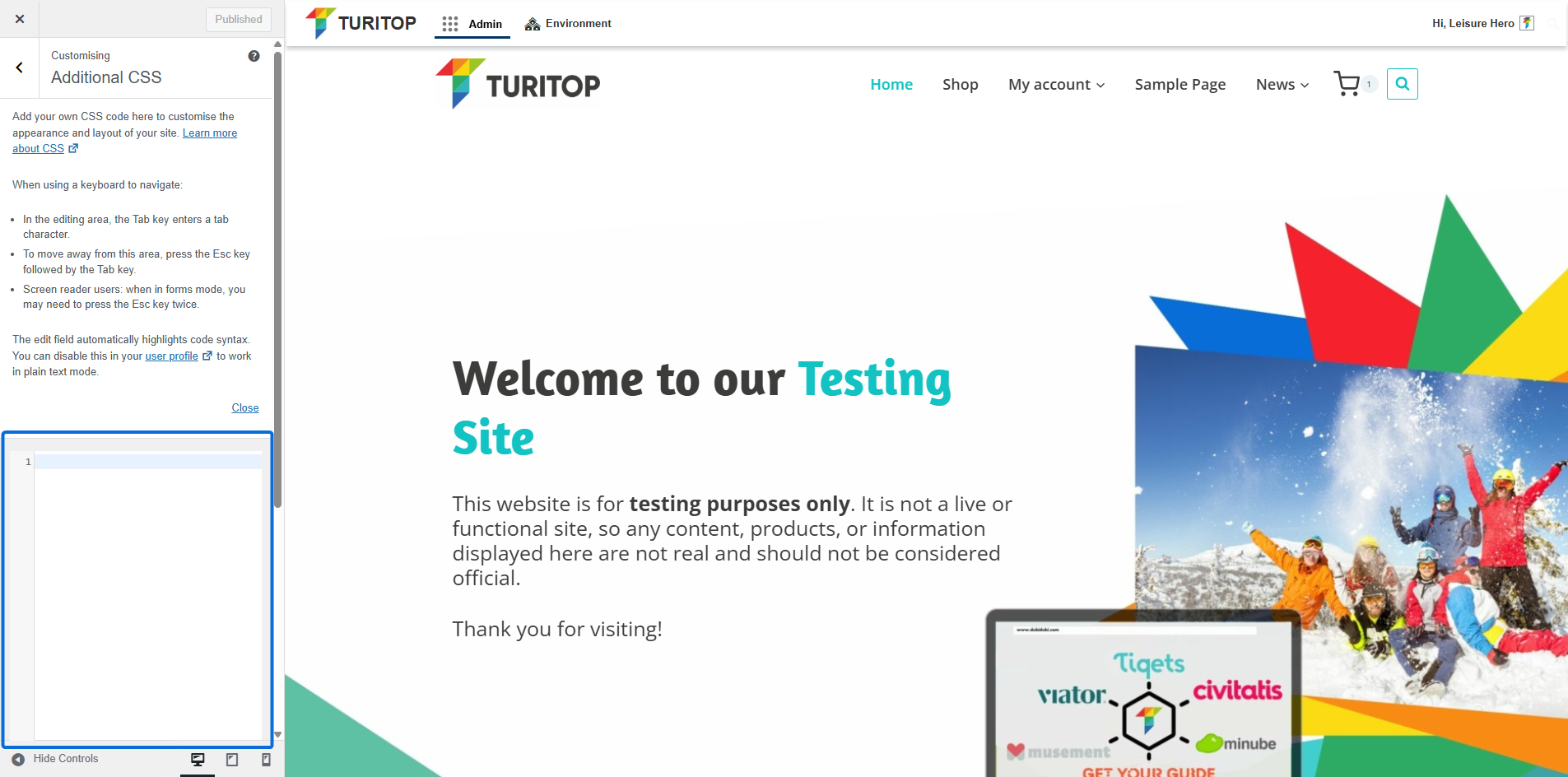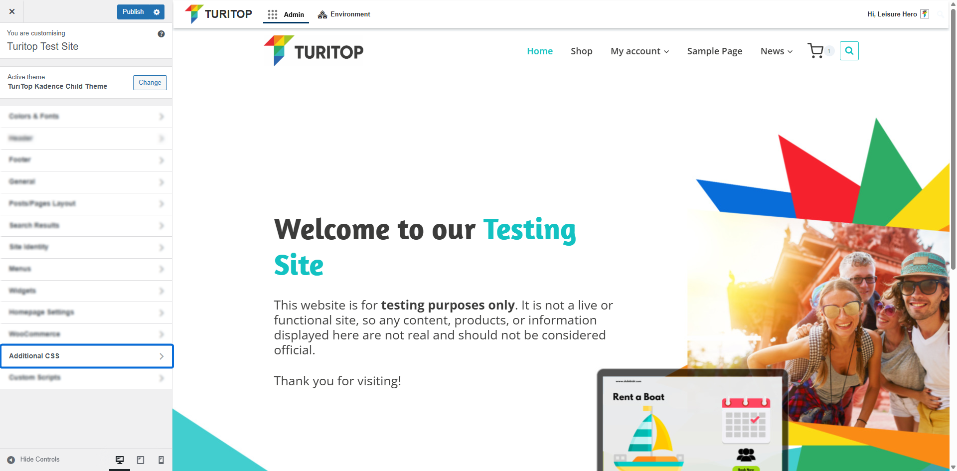 If you want further to personalize your website style with your own CSS, this is the right place to do it. The Additional CSS section allows you to insert any CSS 3.0 code that you want to override the styles configured.