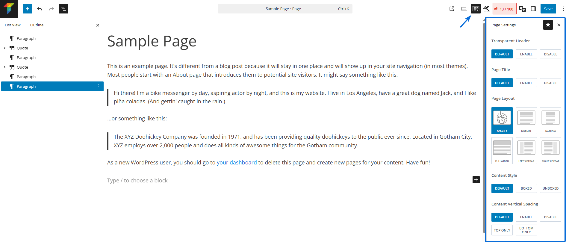 In the same way as the Page Layout, you can configure the default layout for your Single Posts (e.g., blog posts). However, as this type of content is not as static as a single page, you will have more options to control the Layout of your posts.
