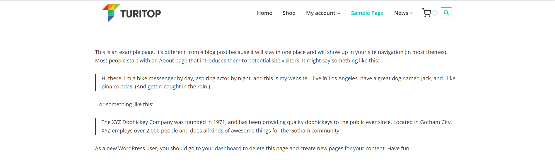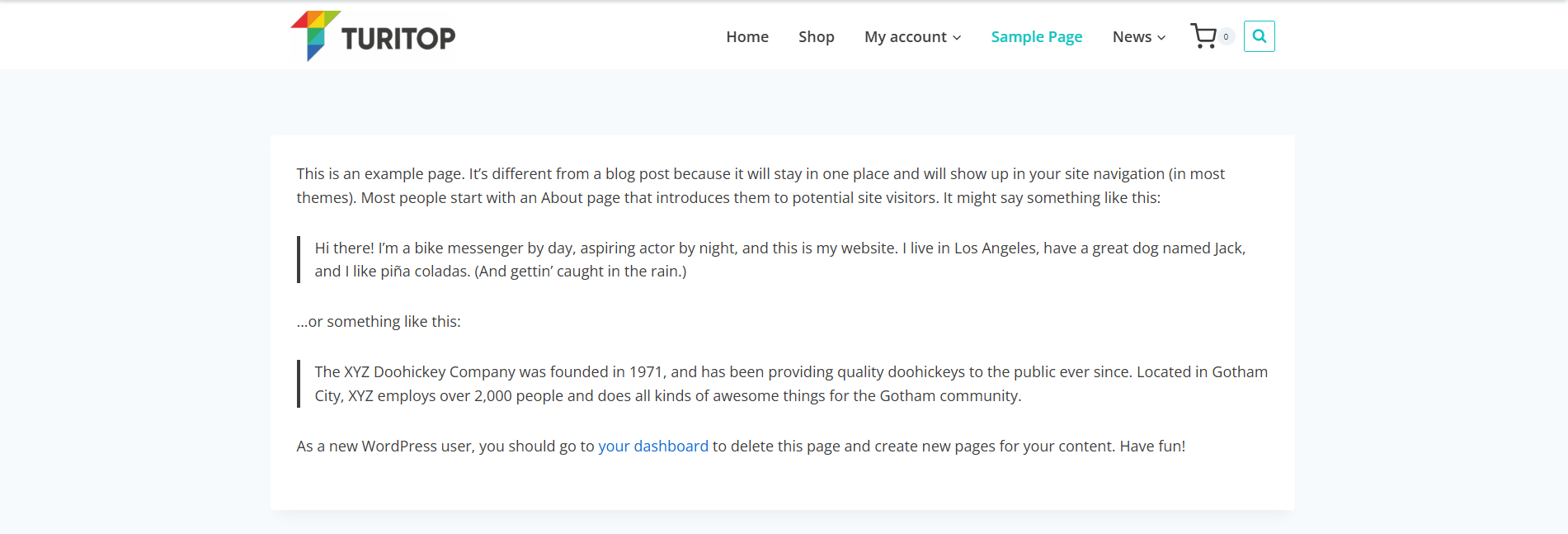 A sample page with “Boxed” Content Style.