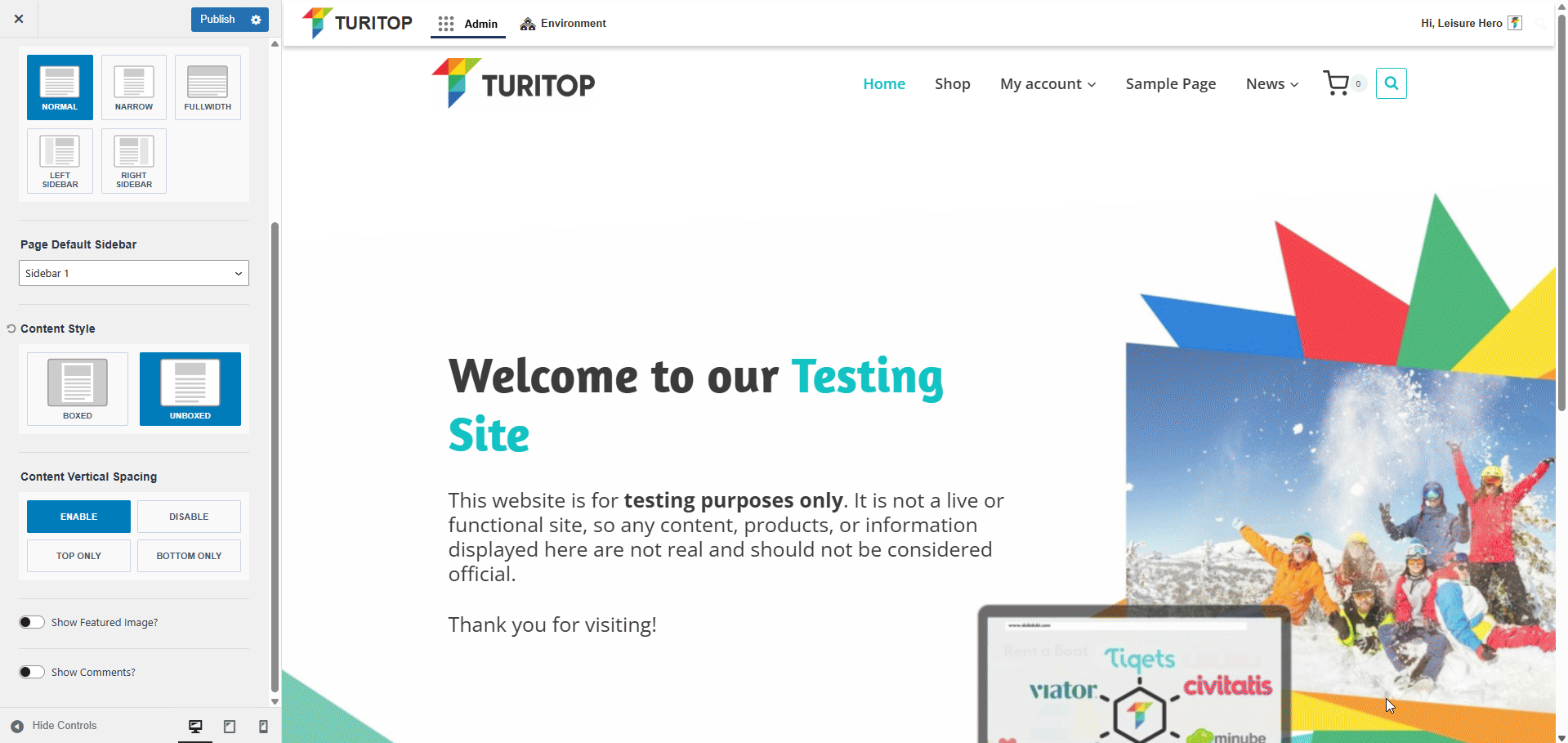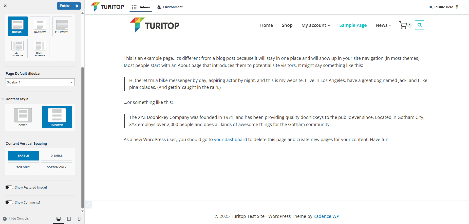 A sample page with “Unboxed” Content Style.