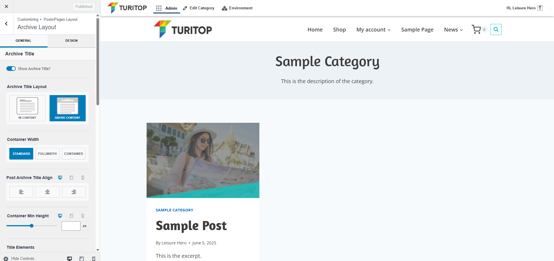 If enabled, you can customize the Post Title Layout and decide if you want to show it “In Content” or “Above Content”: