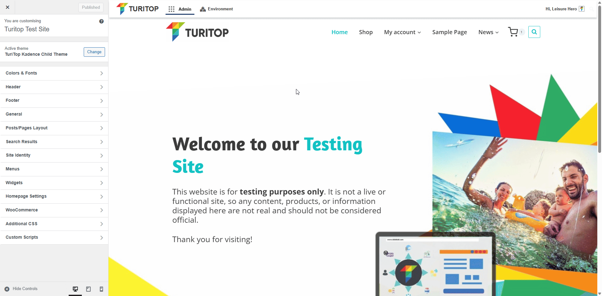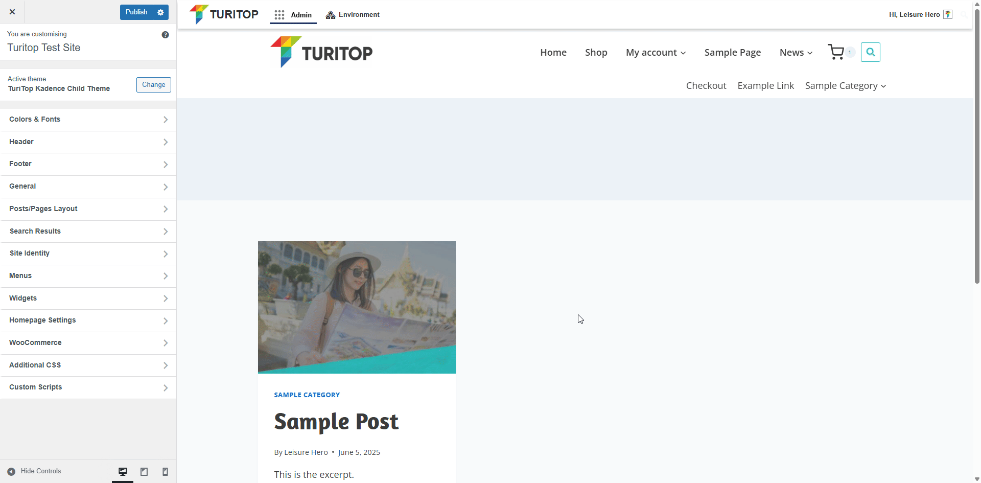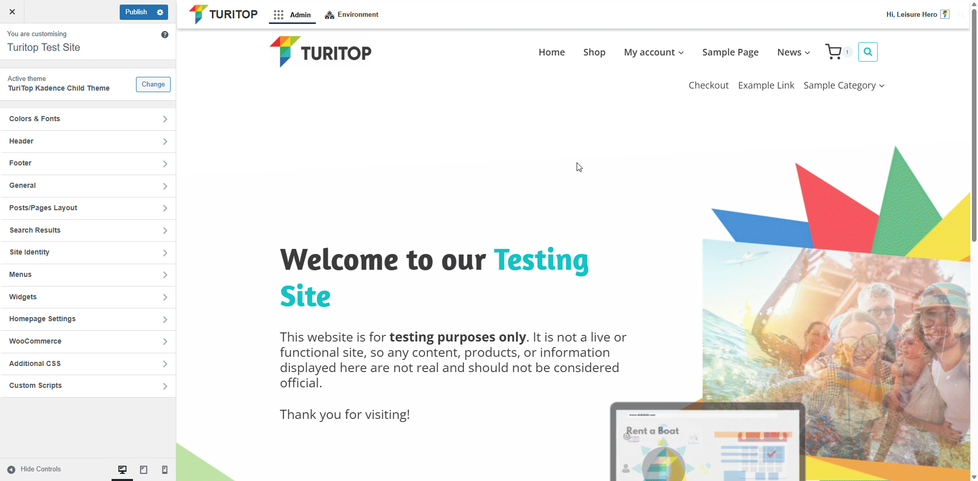 The Footer location works similarly to the previous one, but in this case, we only have one item and one menu available. It’s useful to provide an extra navigation option when the user scrolls to the bottom of your page or to add your legal information. Go to Appearance >>> Customise >>> Footer and drag the Footer Navigation item to a column: