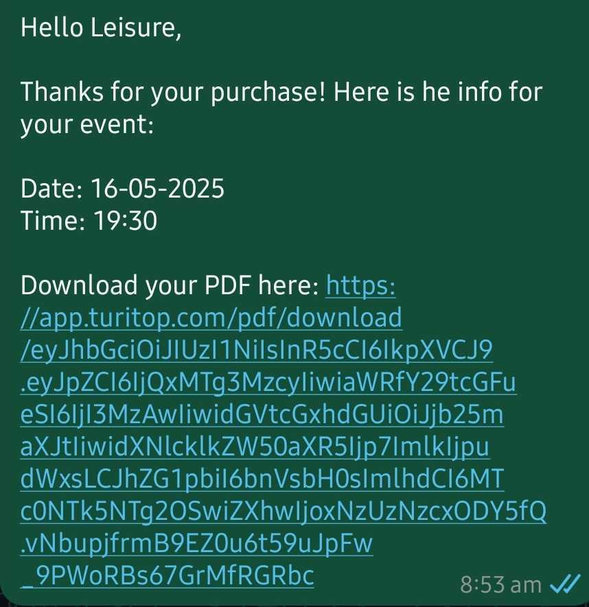 - Before TuriTop event: Useful for reminders or last-minute info.