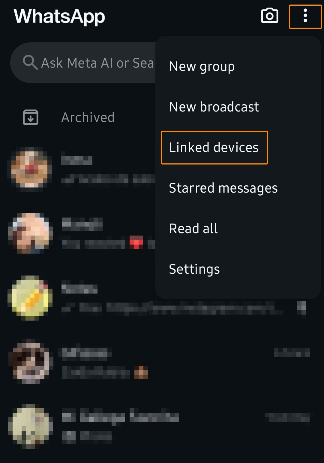 Step 1: Click the “three dots” button and select “Linked devices”.