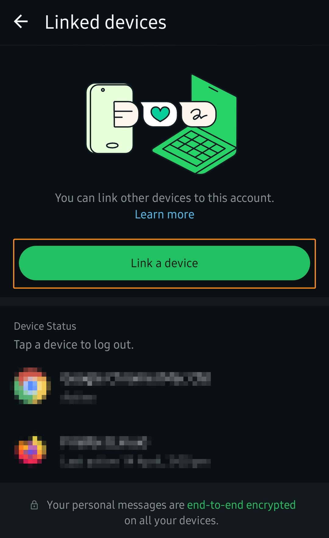 On iOS, the process is fairly identical. Go to Settings >>> Linked devices >>> Link device.