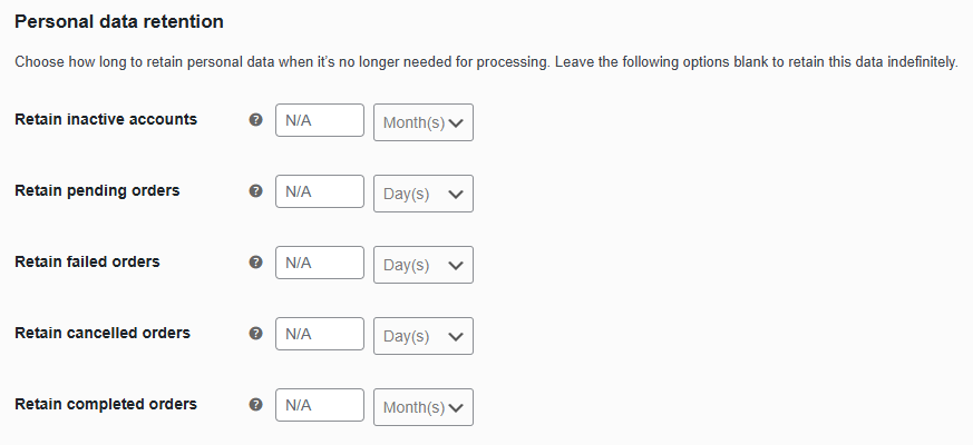 If you leave any of these options blank, the data will be retained indefinitely, which is NOT recommended.