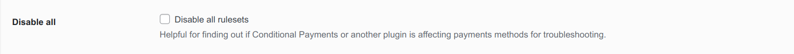 Additionally, you can check the Disable all rulesets box to temporarily deactivate all the rulesets.