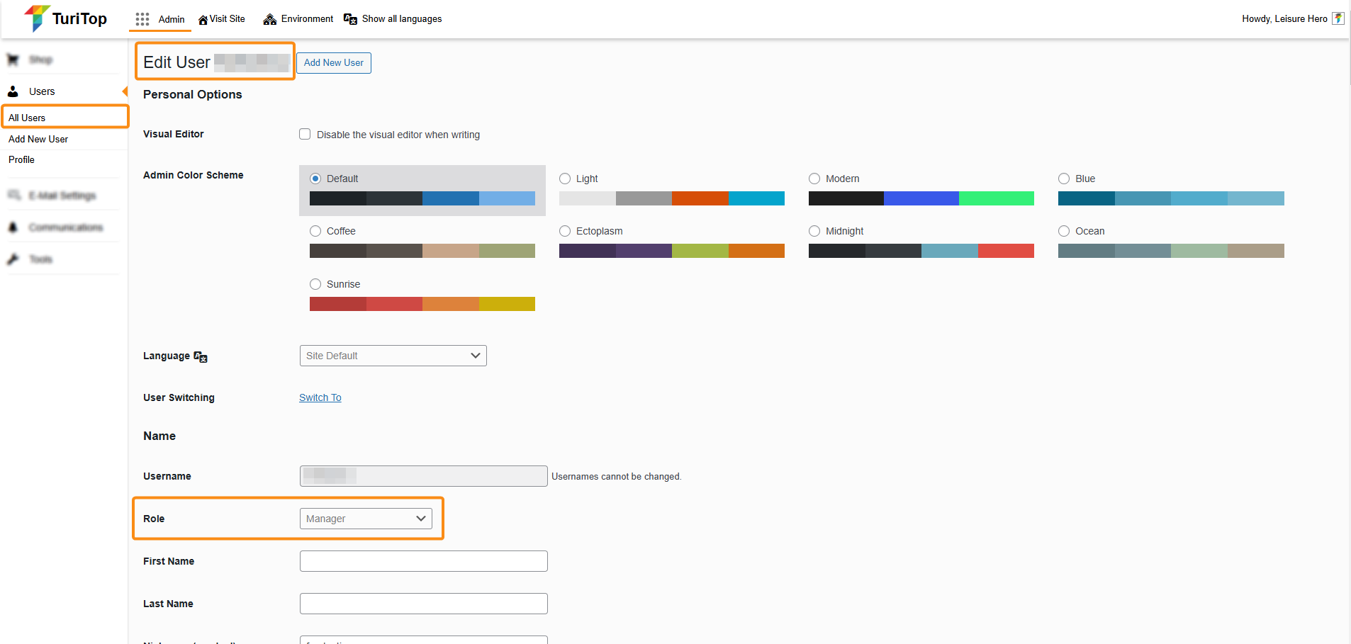 Admin >>> Users >>> All Users >>> Edit