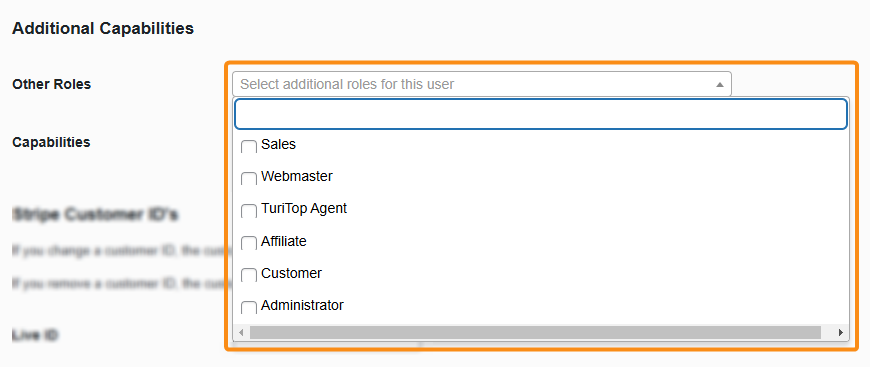 If you want to add additional Roles to a user, scroll down to the Additional Capabilities section >>> Other Roles and check the corresponding boxes: